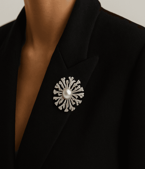 Este broche se puede combinar tanto con un look arriesgado y darle un toque más clásico como con un traje mas discreto.