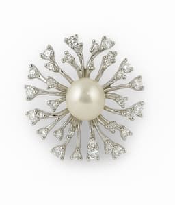 Vistoso broche de circonitas con perla central de la firma YANES Precio marca 260 eur